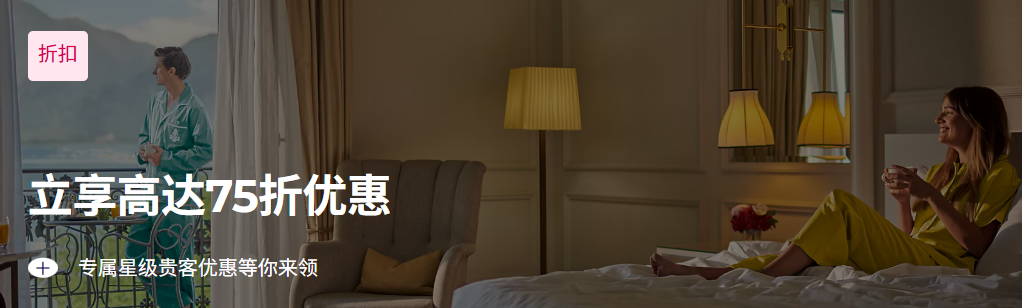 4.本优惠适用于会员于2025年12月8日至2026年3月15日期间,在参与酒店通过“高达75折优惠-Guest Star 星级贵客优惠”价格预订且入住,预订时间为2025年10月30日至2025年12月1日晚上11:59(中欧时间)。