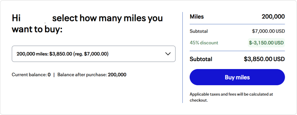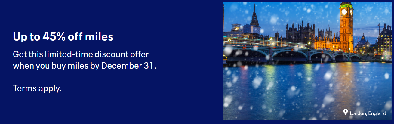 💰本次里程购买促销最高可享 45% 折扣,每个账户每个日历年最多可购买 200,000 英里,购买的里程不可退款,其中: