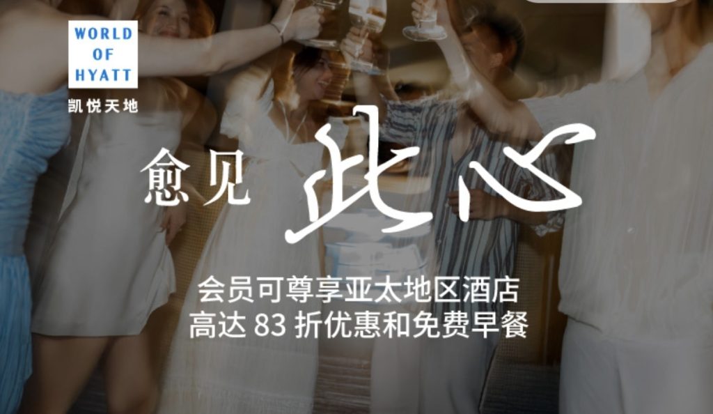 Hyatt凯悦亚太地区新一年的传统超值优惠活动刚刚启动,活动时间内预订入住凯悦旗下亚太地区参与活动的酒店,会员最高可享 83 折优惠和免费早餐,非会员也可享高达 85 折优惠,让您更轻松、更享受美好旅程!
