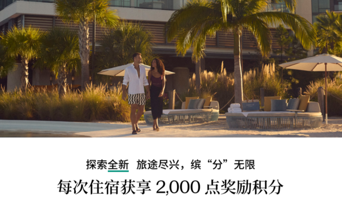 活动期间每次合资格入住即赚 2,000 点奖励积分(非每晚),积分赚取无上限,适用希尔顿旗下所有品牌、所有酒店与度假村。