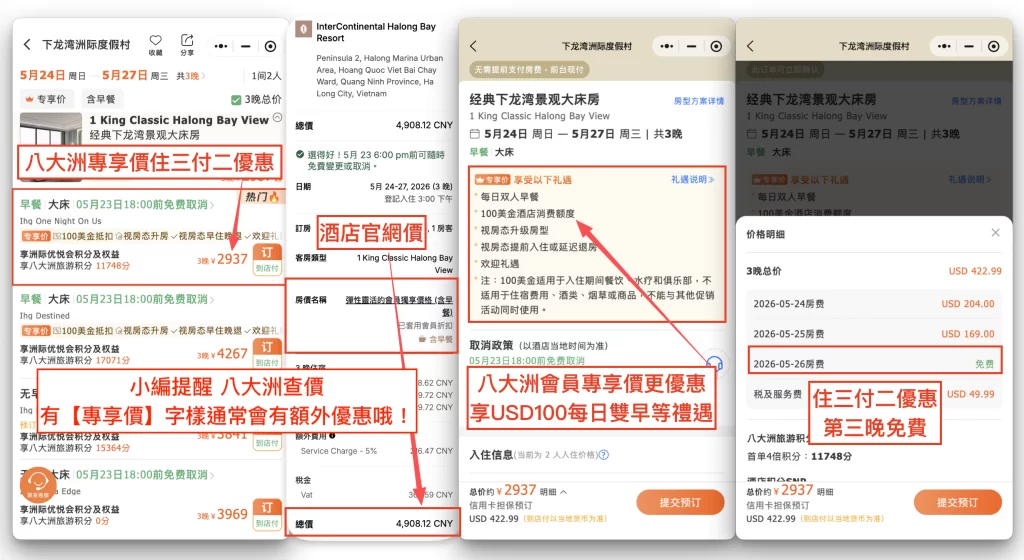 对常旅客来说,八大洲最大的优势不在于单纯比价,而是把「会员价+额外待遇+可刷房晚」一次整合。