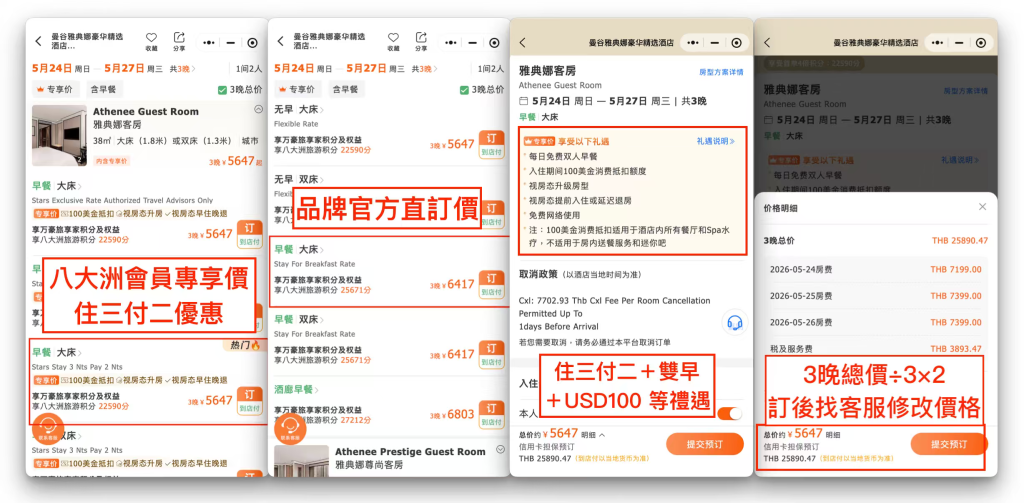 白话一点就是:同样的房价,多拿一堆额外的待遇(双早+餐饮额度)这种才叫聪明订房。